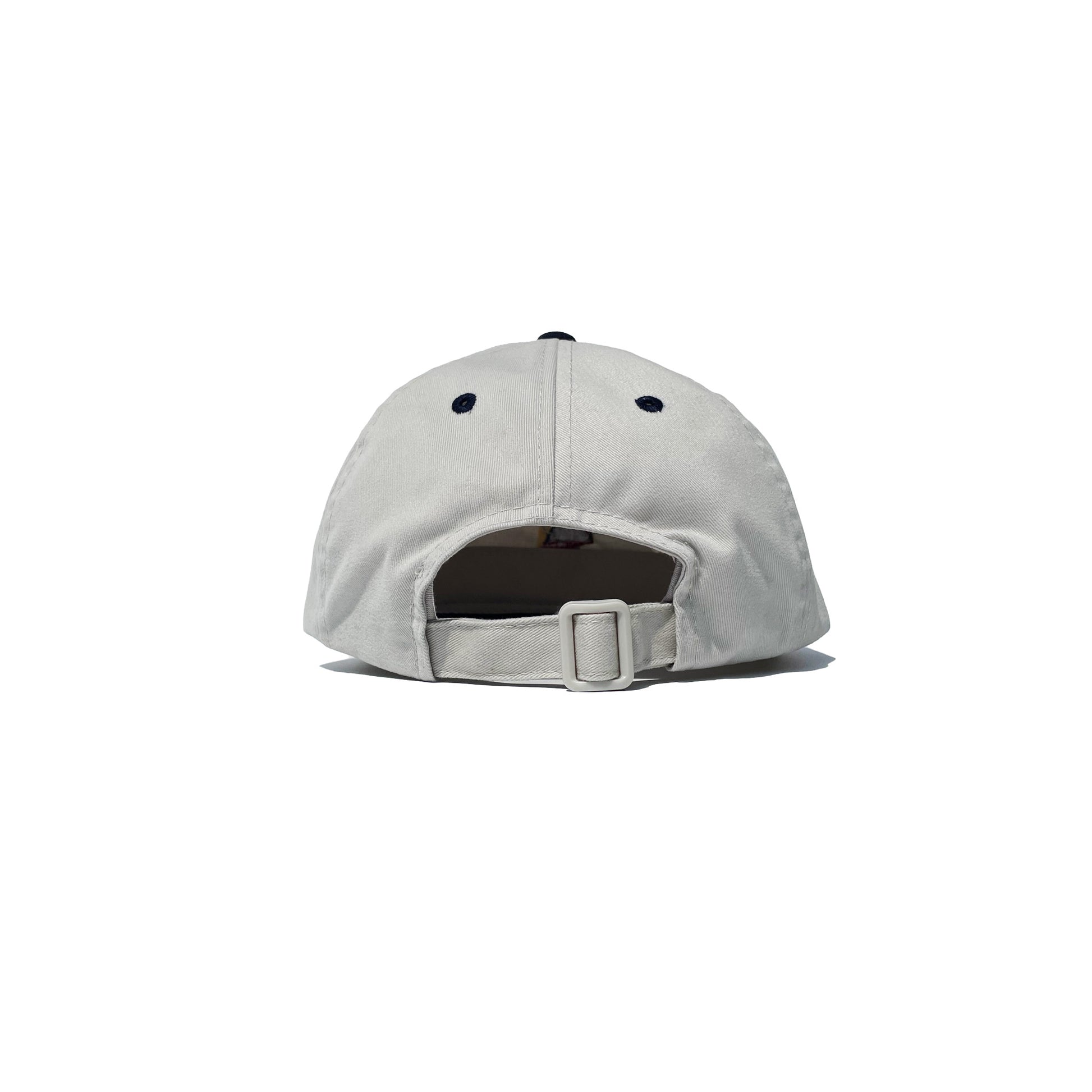 カラーはライトグレー/ネイビーの2トーン。柔らかくコットンに近い質感で少し浅めのロープロファイルのクラウンです。バックのストラップは同素材のベルトです。
