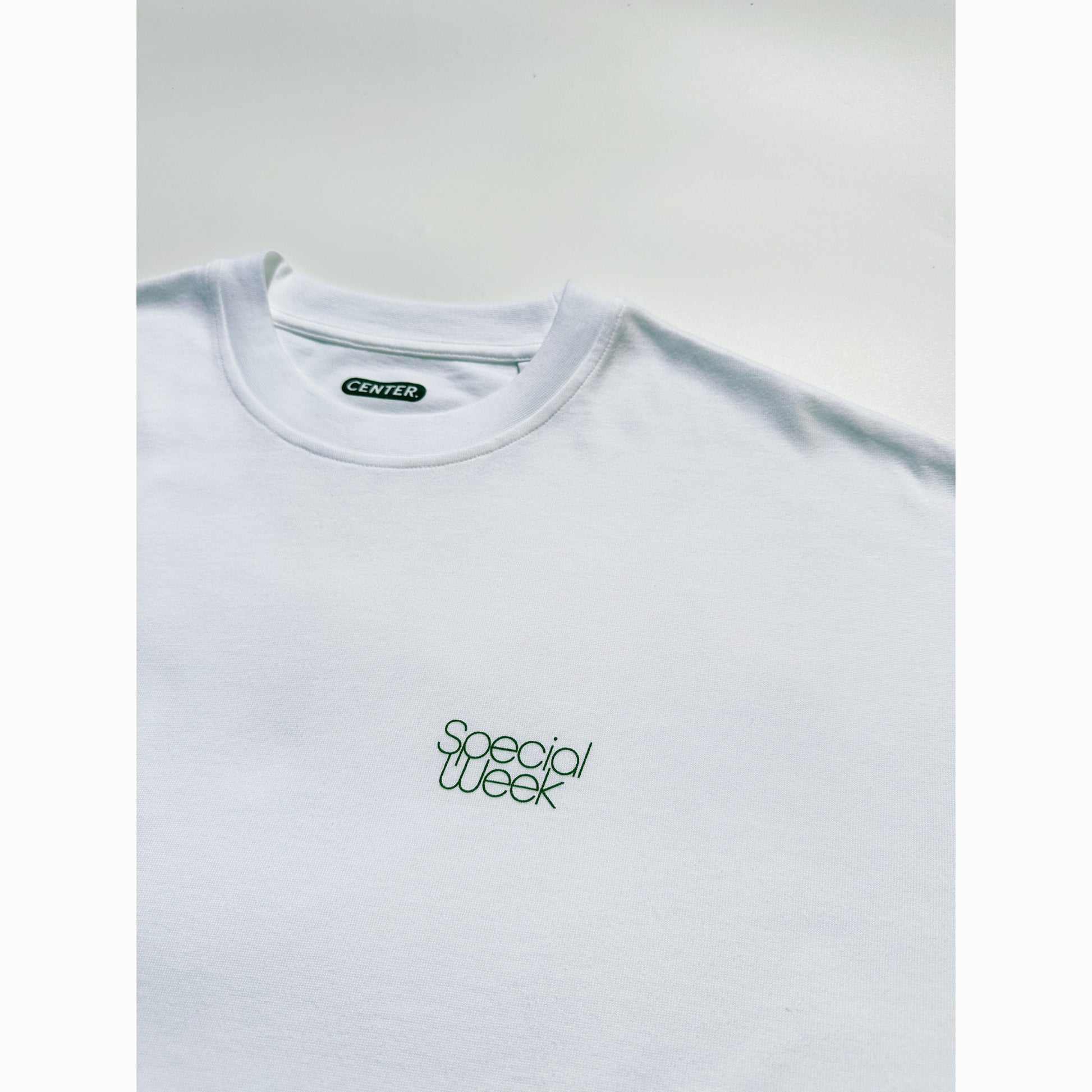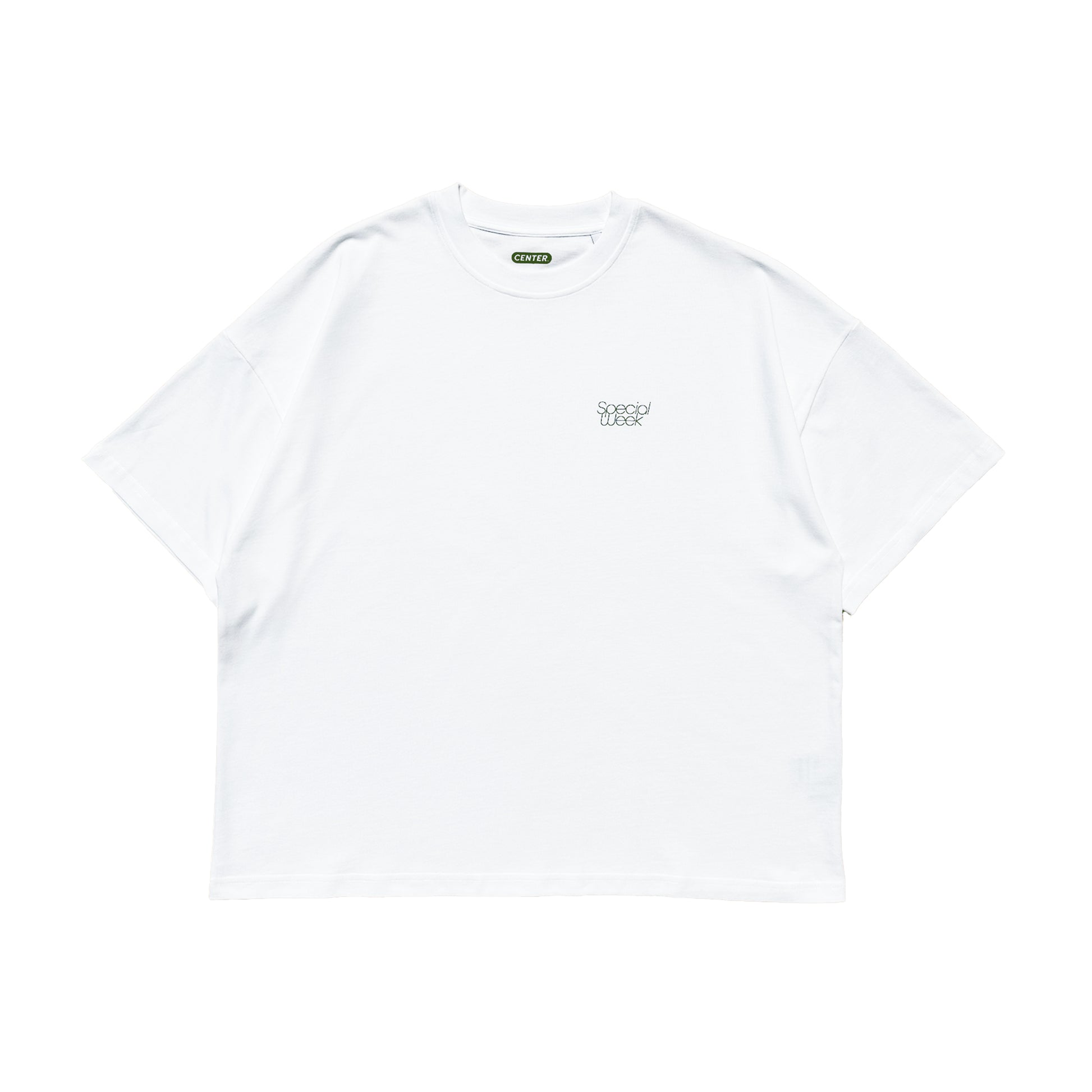 ドロップショルダーのオーバーサイズS/Sです。オーガニックコットン100%。質、シルエット共最高です。モチっと重めで柔らかく、ドレープ感が堪らない至極の1枚となっております。胸元には、リスナーにとっては嬉しいお言葉[Spesial Week] を刷っています。バックは無地です。
