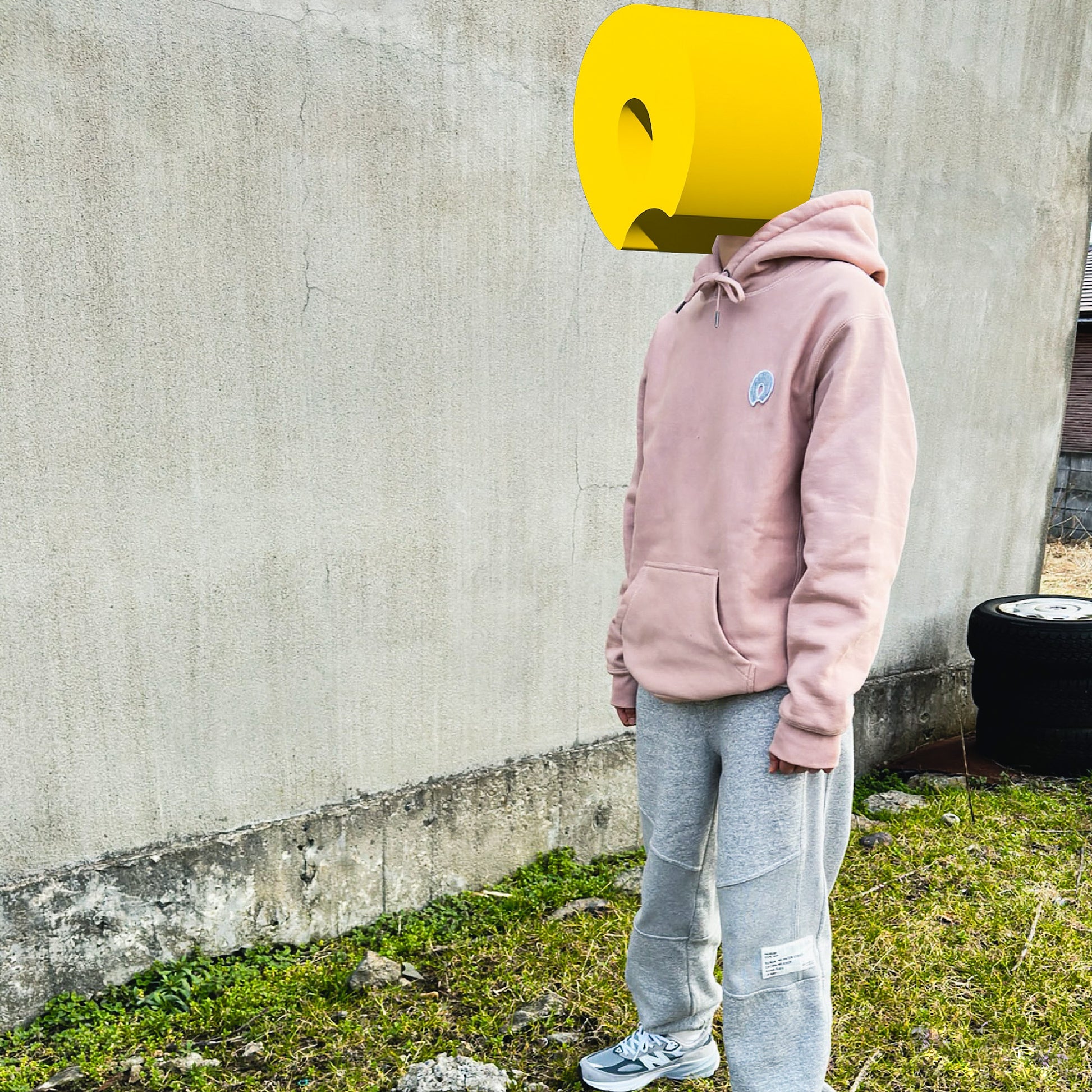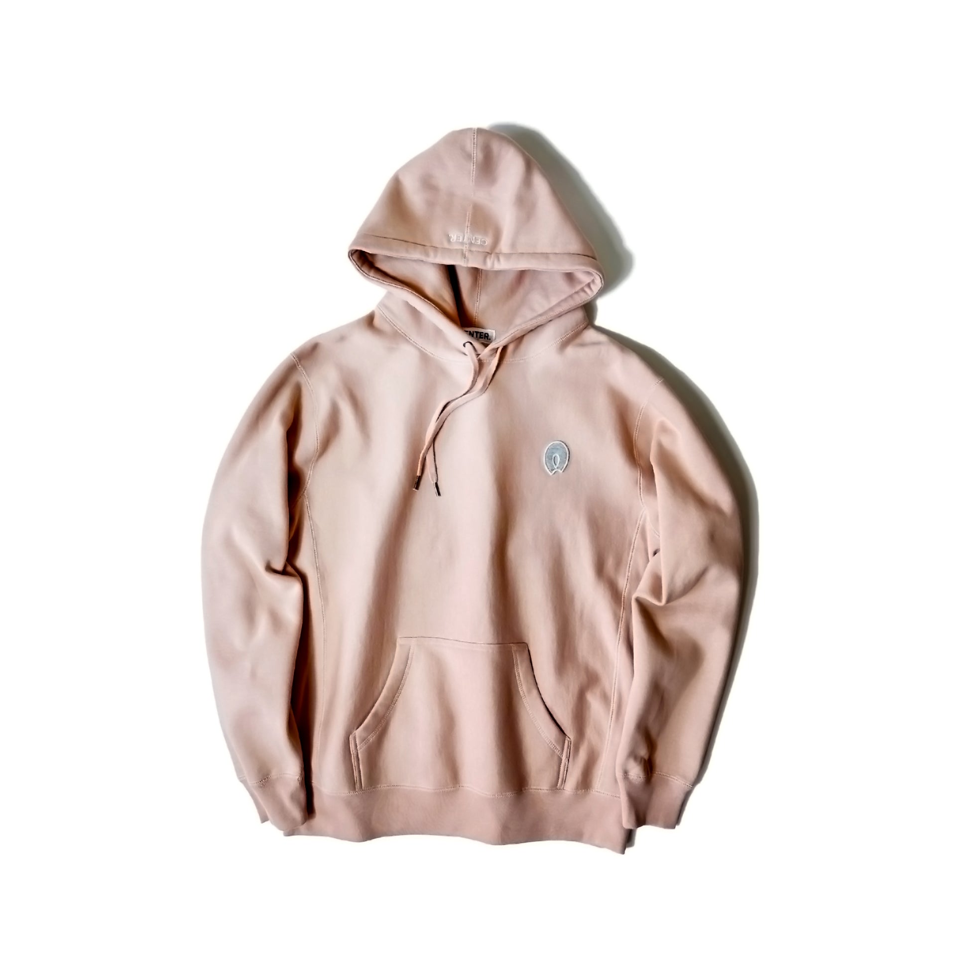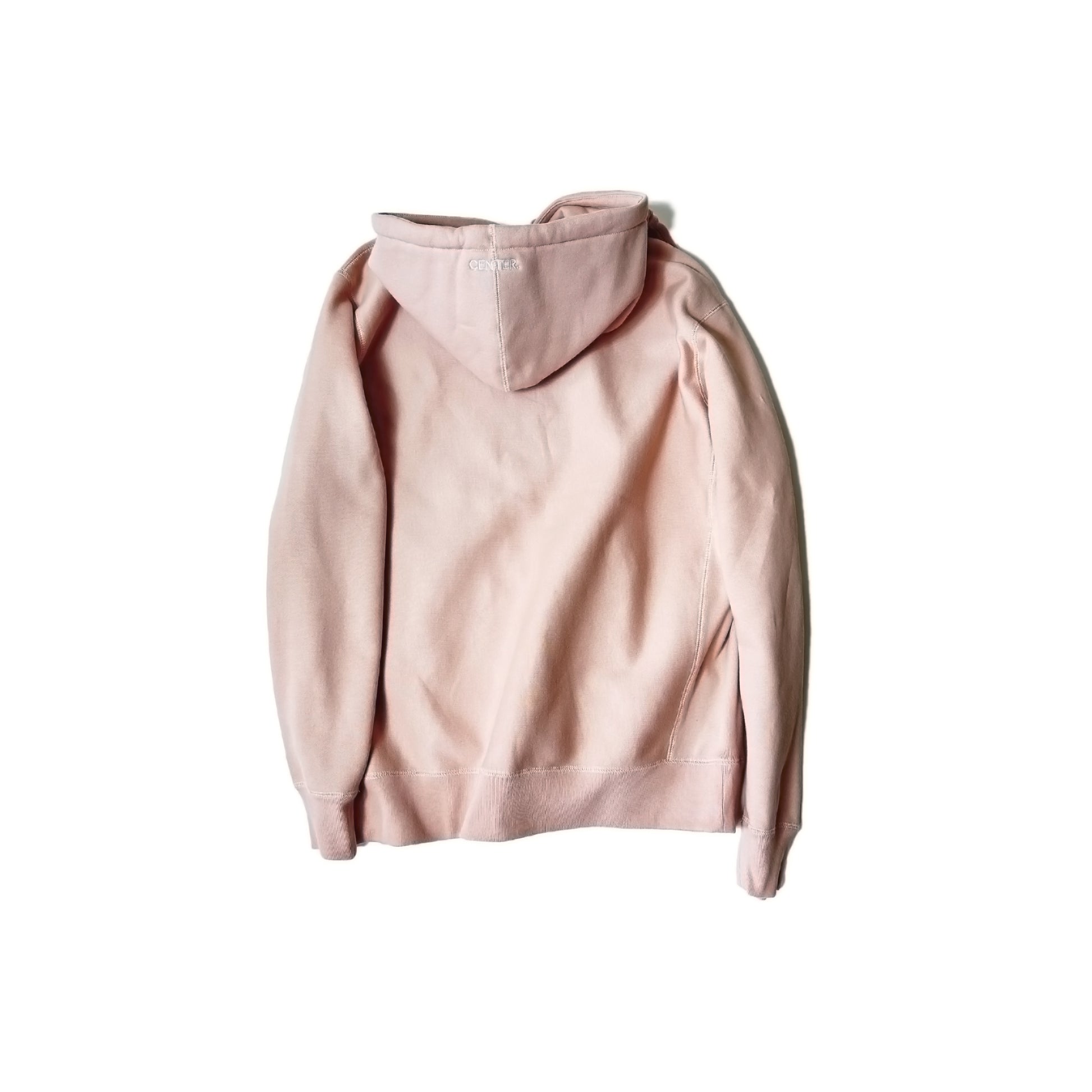 当初ワッペンの色を決めかねていて、グレーのフェルトで少しだけ作ってみました。使わない予定でしたが気に入ってしまったのでこのグレーにとても合うであろうくすんだピンクのボディでワッペンの数だけ作りました。ワッペンのサイズ、フード部分の刺繍、ボディは他のSymbol Patch Hoodieと同じです。